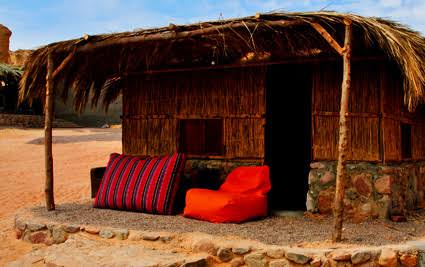 يقدم لك البدو الذين يملكون هذه الأكواخ إفطارا بدويا عادة ما يتكون من: البيض، الفول، الجبن، البابا غنوج مع شاي المرمرية البدوي، أو كريب حلو أو حادق، بيتزا مع السلطة الخضراء.