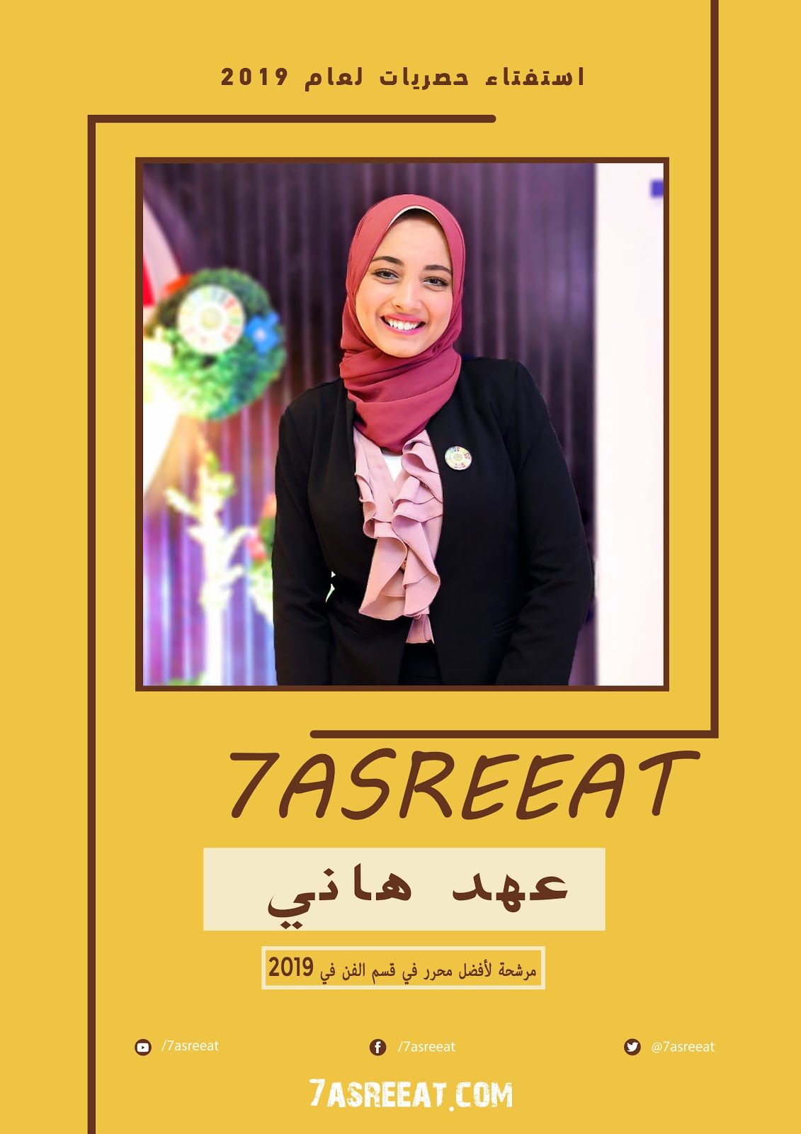 عهد هاني مرشحة للأفضل في قسم الفن في حصريات لعام 2019