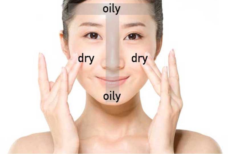 يتخذ شكل البشرة حرف تي، وذلك من خلال أن المناطق المختصة بالبشرة الدهنية هي الأنف والجبهة، بالإضافة إلى منطقة الذقن أما عن المناطق الخاصة بالبشرة الجافة فهي باقي الوجه.