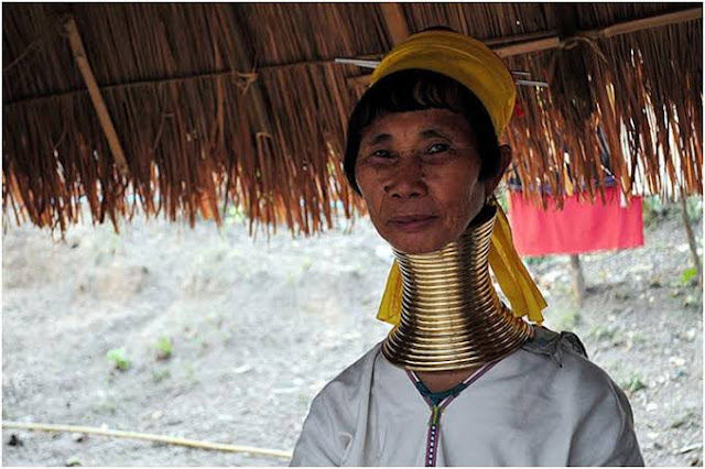 توجد قرية في بورما تُسمي بـ”قرية النساء الزرافات”، حيث تضع المرأة على رقبتها الكثير من الحلقات والأساور كي تبدو طويلة، وصاحبة الرقبة الأطول تكون الأكثر جمالًا، ويفترض أن هذه الطريقة لحمايتهم من هجوم النمور والحيوانات المفترسة.