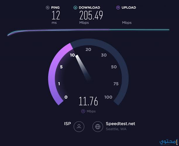 يتم اتباع الخطوات الآتية لفحص وقياس سرعة الإنترنت: