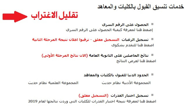 أعلنت وزارة التعليم العالي والبحث العلمي، عن فتح مرحلة تقليل الاغتراب أمام الطلاب المرشحين في المرحلتين الأولى والثانية، بداية من اليوم، الخميس الموافق 8 أغسطس 2019، ويستمر حتى يوم الثلاثاء الموافق 20 أغسطس 2019 الجاري.