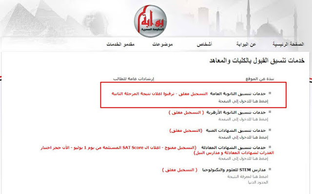 اعرف نتيجة تنسيقك في المرحلة الثانية