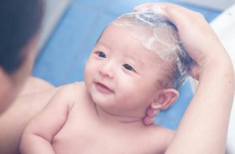 5. لفي الطفل بمنشفة وضعي يدك خلف ظهره وبللي رأسة وضعي القليل من الشامبو الخاص بالأطفال واغسليه بقطعة من القماش.