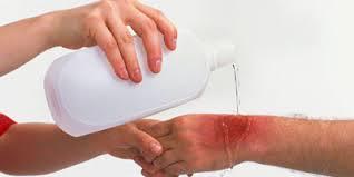 ١-إذا كان الحرق من الدرجة الأولى، يجب وضع ماء بارد لمدة من 10 إلى 45 دقيقة.
