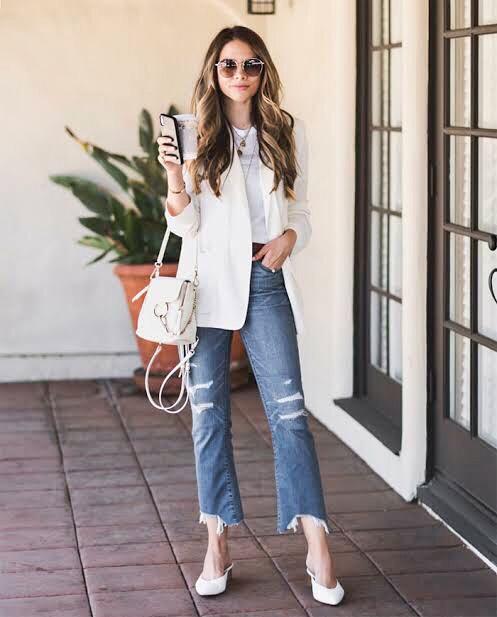 يعد البليزر الأبيض من القطع الرسمية التي يجب توافرها في خزانة كل فتاة، لأنه يعطي جمالاً وأناقة للفتاة ويتميز هذا الموديل بأنه لا تنتهي موضته فيمكن ارتداءه في أي وقت، ويتناسب مع ألوان عديدة زاهية يمكن إضافتها له فيزداد رونقًا وجمالاً.