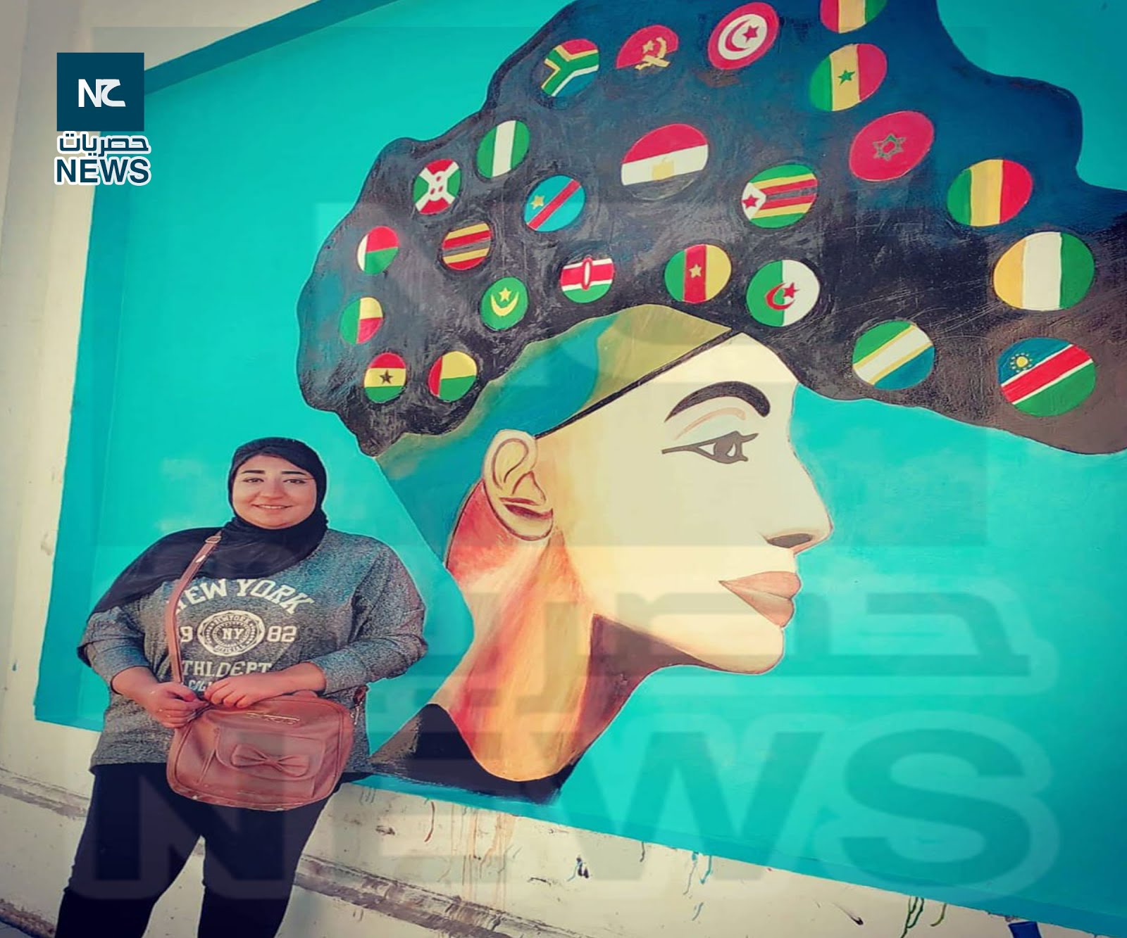 بالصور.. سارة رجب تزين جدران استاد الإسكندرية استعدادًا لأمم أفريقيا